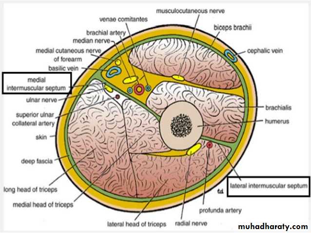 Fascial compartments of upper arm