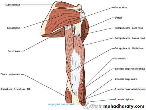 Muscle: three heads of triceps m.N. supply to the muscle: radial n.