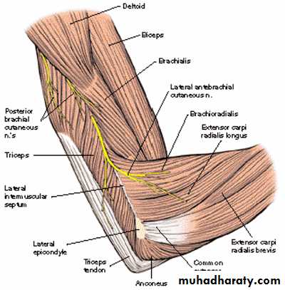 Lateral cutaneous n. of forearm.Articular branches