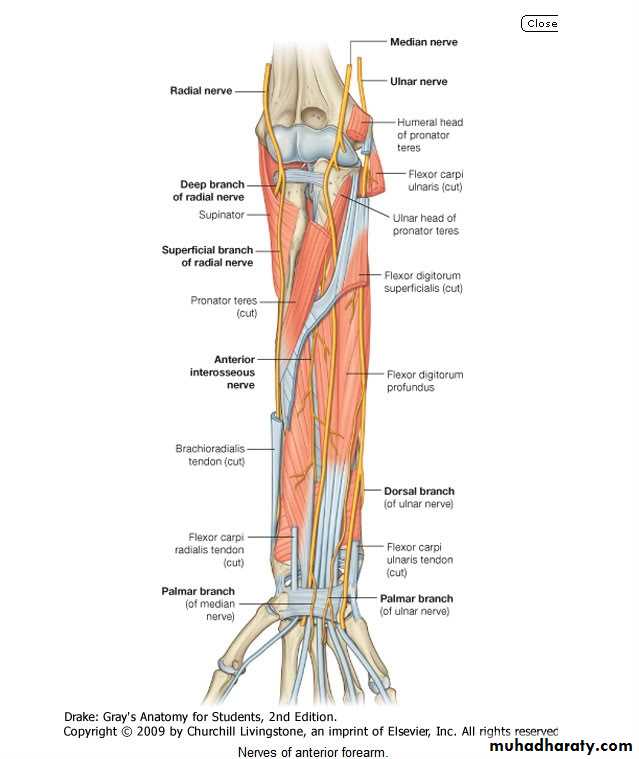 Branches in the anterior compartment of the arm