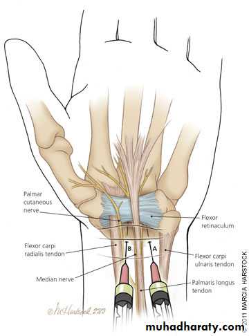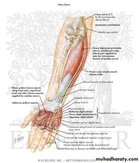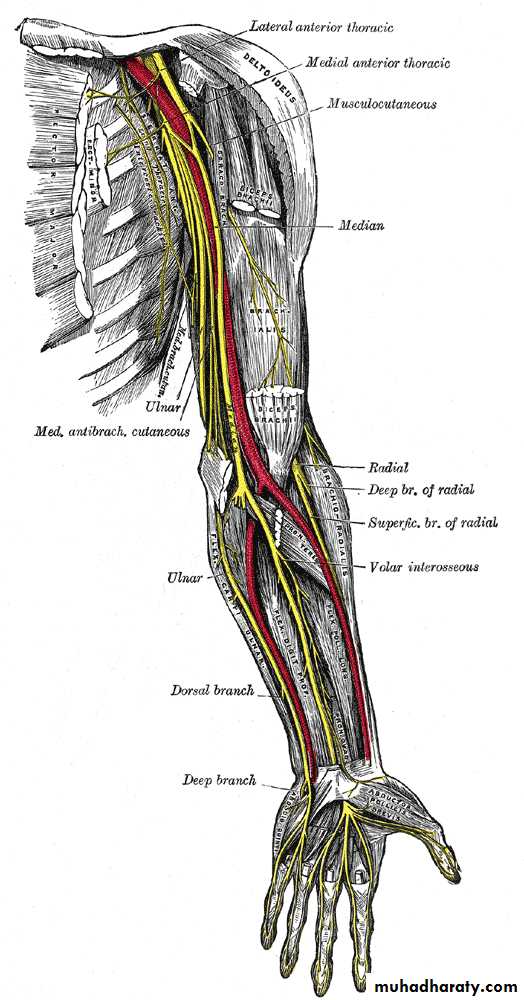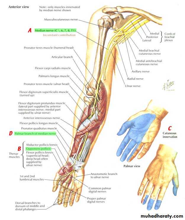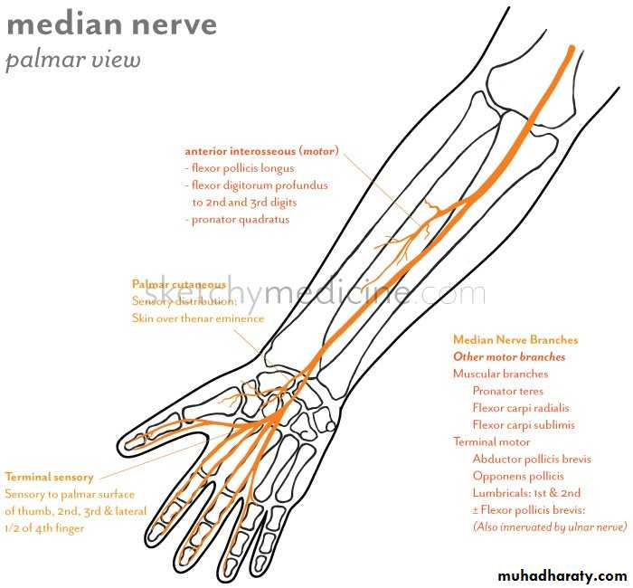 • Palmar cutaneous branch.