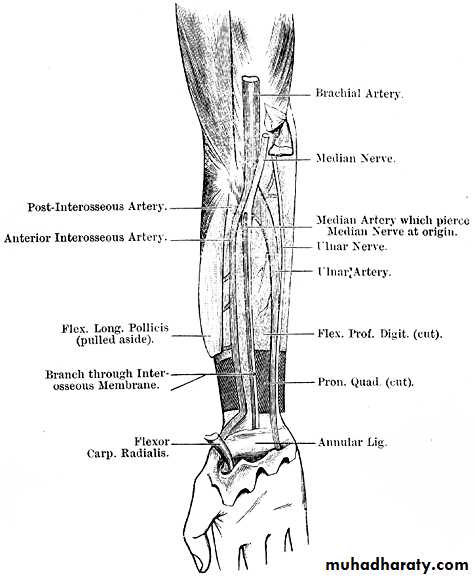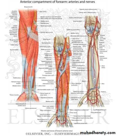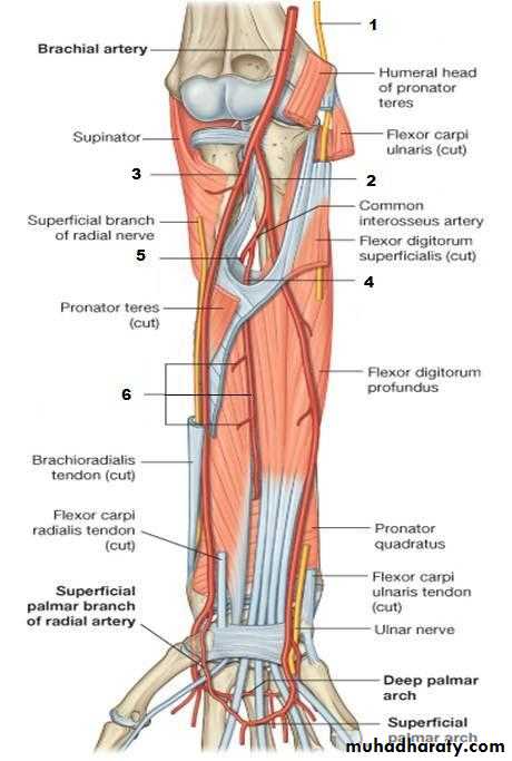 Arteries of anterior fascial compartment of forearm