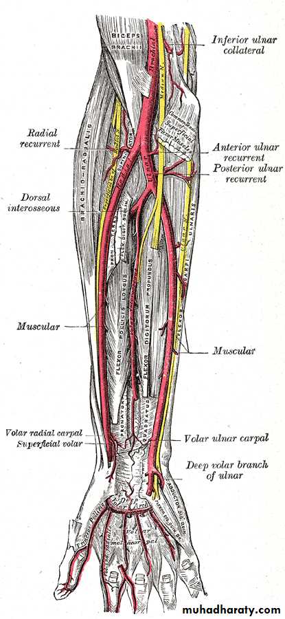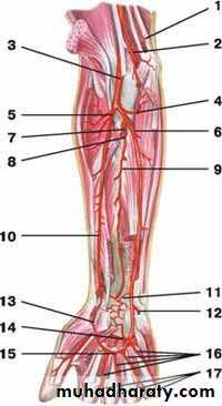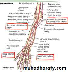 • Branches that share in arterial anastomosis around wrist joint.