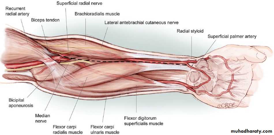 • Superficial palmar branch.