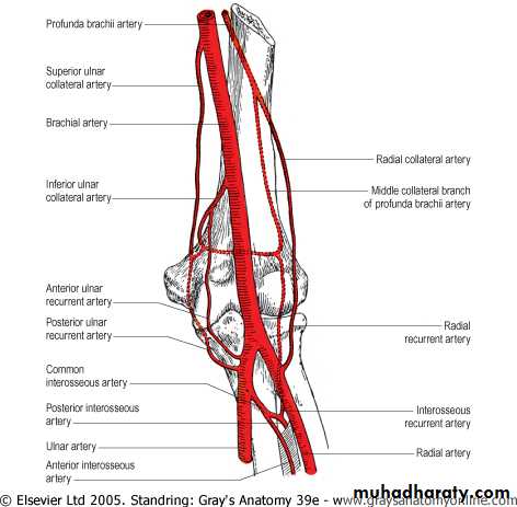 Arterial anastomosis around elbow joint