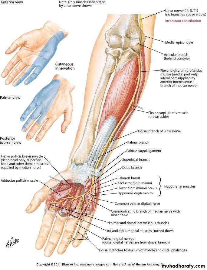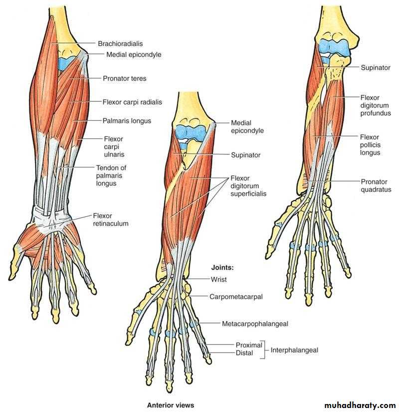 Blood supply to muscles: ulnar a., radial a.
