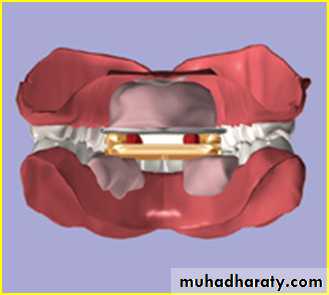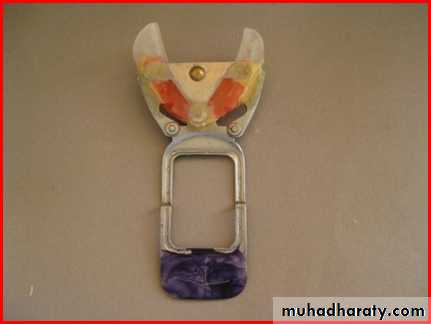 • consists of contacting point attached to one dental arch and plate attached to opposing dental arch