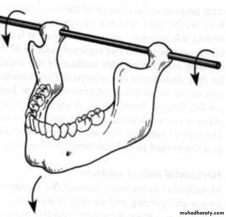In CR the mandible has Purely rotary movement (hing motion) about transverse Horizontal axis.