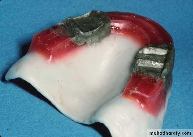 • Four metal beads are embedded into premolar and molar areas of maxillary occlusal rim.