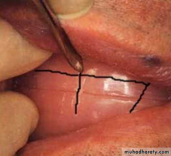 • 1 or 2 notches are cut on the corresponding area of maxillary occlusal rim.