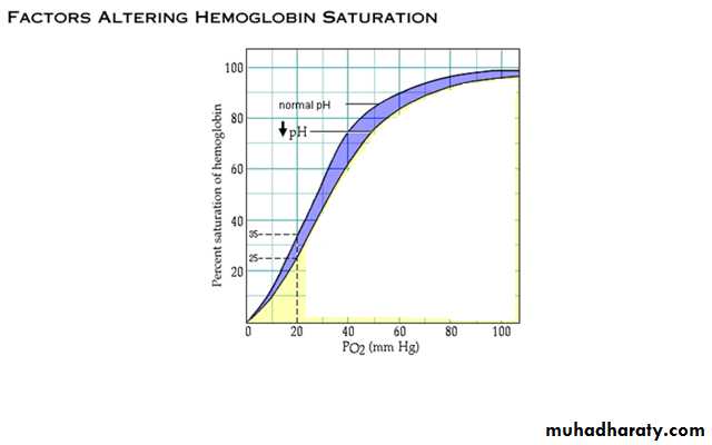 At decreased temperatures,the Hb affinity for O2 is higher(less O2 is released);the curve shifts to left.Similar shift occurs in response to high pH,low PCO2,low BPG.