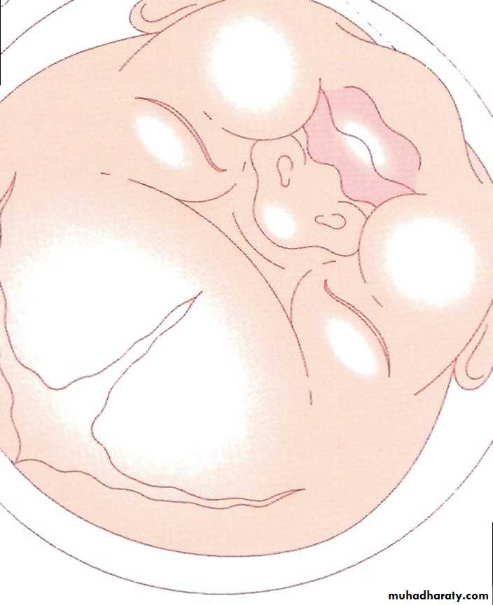 3. The chin may be felt on the same side of the limbs as a horseshoe-shaped rim in mento-anterior position.