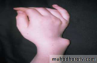 The new-born infant presents with ulnar deviation of the wrist (or both wrists),