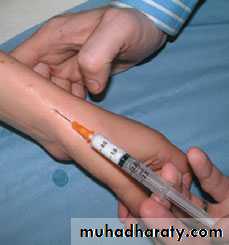 injection of corticosteroid carefully placed at the mouth of the tendon sheath