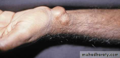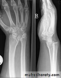 congenital or post-traumatic,the lower radius curves forwards (ventrally), carrying with it the carpus and hand but leaving the lower ulna sticking out as a lump on the back of the wrist.