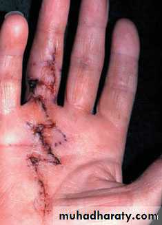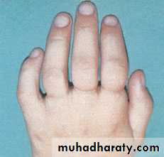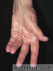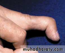 (2) tendon contracture (in which the finger deformity changes with wrist position) and(3) PIP joint contracture (in which there may