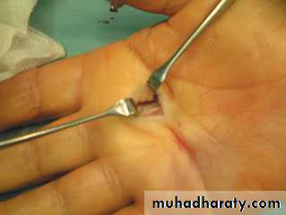 Only the thickened part of the fascia is excised (complete fasciectomy is usually unnecessary)