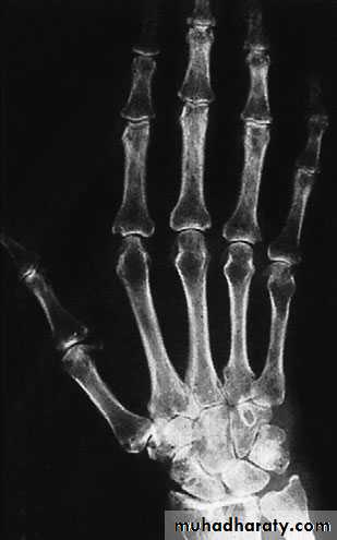 Osteoarthritis of the trapezio-metacarpal joint is common in postmenopausal women.Heberden’s nodes of the finger joints,