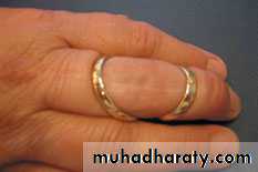 Any digit may be affected, but the thumb, ring and middle fingers most commonly
