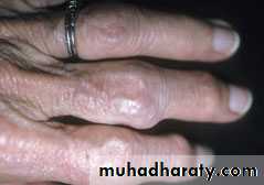 (Bouchard’s nodes).Strongly associated with osteoarthritis elsewhere in the body (polyarticular OA).