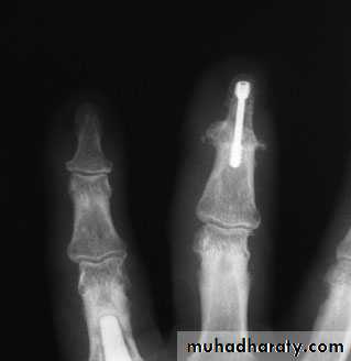 Treatment : is usually non-operative. If the joint is very painful or unstable then surgery is considered. Fusion restores reliable, pain-free pinch in the index and middle finger PIP joints; fusion of the ring and little fingers compromises grip and so joint replacement is usually preferable.