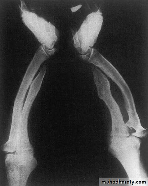 Treatment: If deformity is severe, the lower end of the ulna may be shortened; this is sometimes combined with osteotomy of the radius