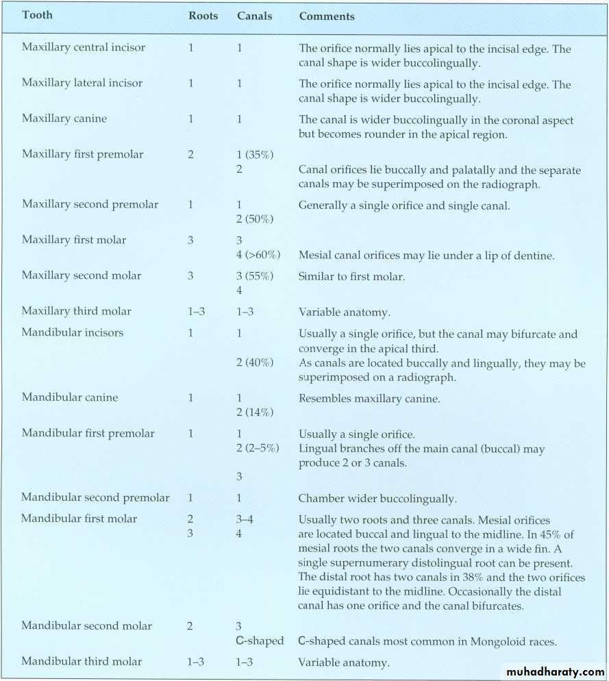 *The No. and curvature of root canals may need modification of outline form & to avoid scarifying of tooth structure.2.Preoperative radiograph: Give great information about status, shape and size of pulp chamber.