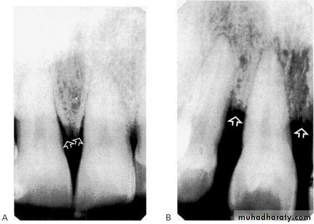 Often infrabony defects are difficult or impossible to recognize on a radiograph because one or both of the cortical bony plates remain superimposed with the defect.