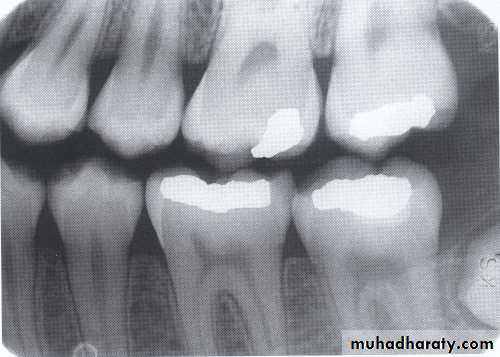 • Radiographically; the defective filling identified with open or loose contacts, poor contour, uneven marginal ridges over-hangs.