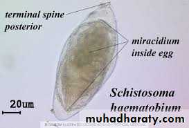 1- Urine examination: the last few drops of urine at noon-time or after exercise are either examined directly or after centrifugation & examine the sediment.2- Hatching test: add few drops of water to urine sediment and examine after few minutes to see meracidium which hatch from egg.