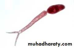 • Each miracidia transforms into many fork-tailed, free swimming forms called cercariae within 4-6 weeks of entering snail.