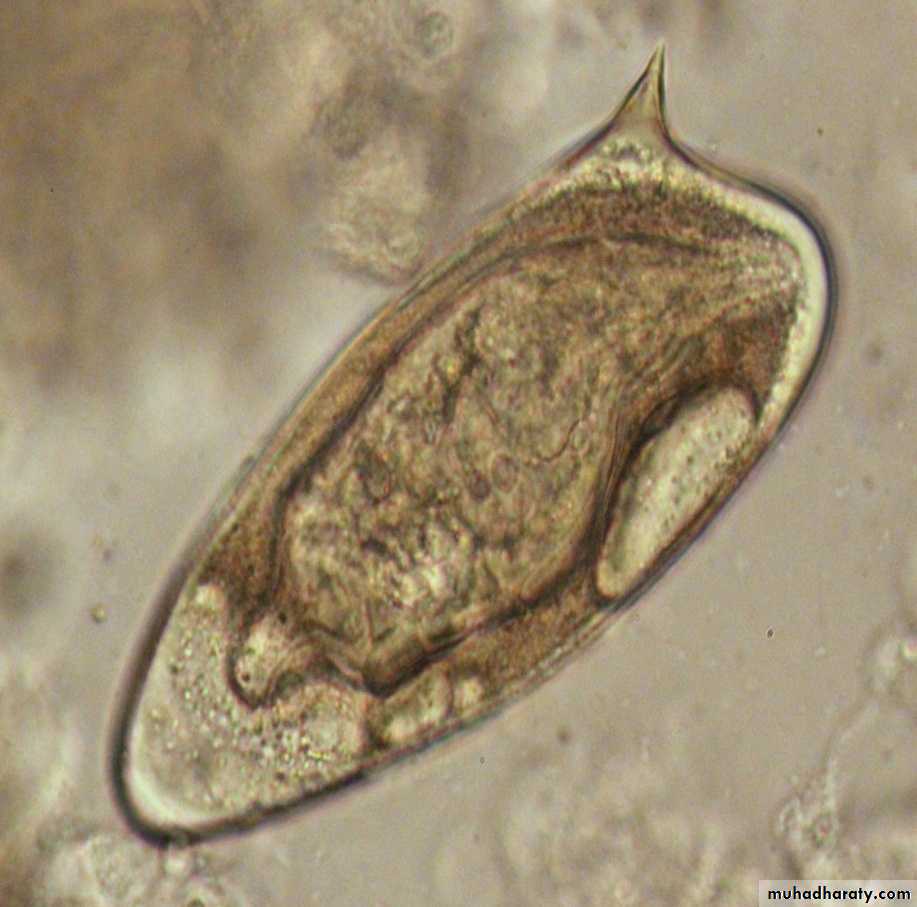 Large size, oval shape, embryonated, lateral spine.Diagnosis