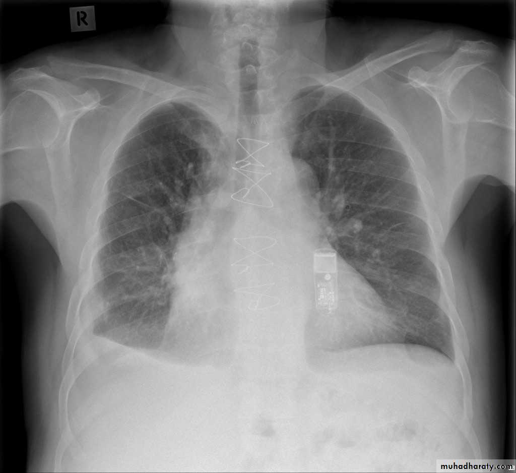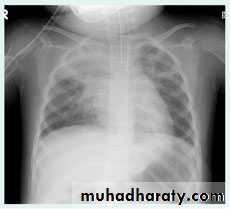 A tension pneumothorax occurs when intrapleural air accumulates progressively in such a way as to exert positive pressure on mediastinal and intrathoracic structures. It is a life threatening occurrence requiring rapid recognition and treatment is required if cardiorespiratory arrest is to be avoided.Radiographic features