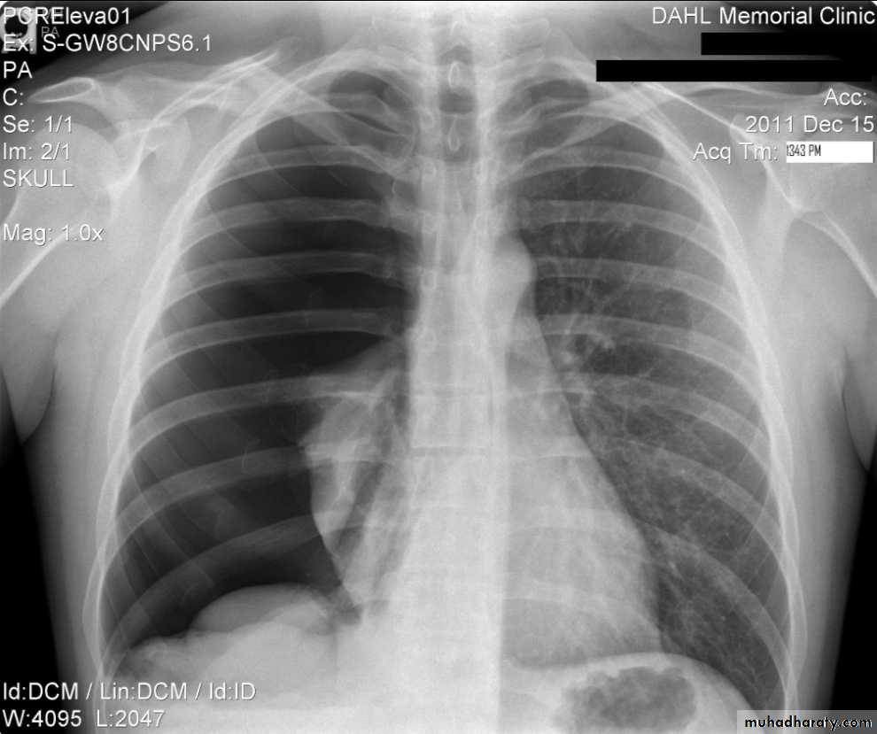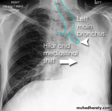Non-specific signs indicating left sided atelectasis are usually also be present including: