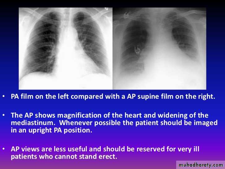 Plain radiographChest radiographs are the most commonly used examination to assess for presence of a pleural effusion, however it should be noted that on a routine erect chest x-ray as much as 250-600 ml of fluid is required before it becomes evident 6. A lateral decubitus film is most sensitive, able to identify even a small amount of fluid. At the other extreme, supine films can mask large quantities of fluid.