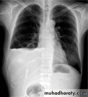 A subpulmonic effusion (infrapulmonary effusion) may be seen when there is previously established pulmonary disease, but can also be encountered in normal lungs , They are more common on the right, and usually unilateral