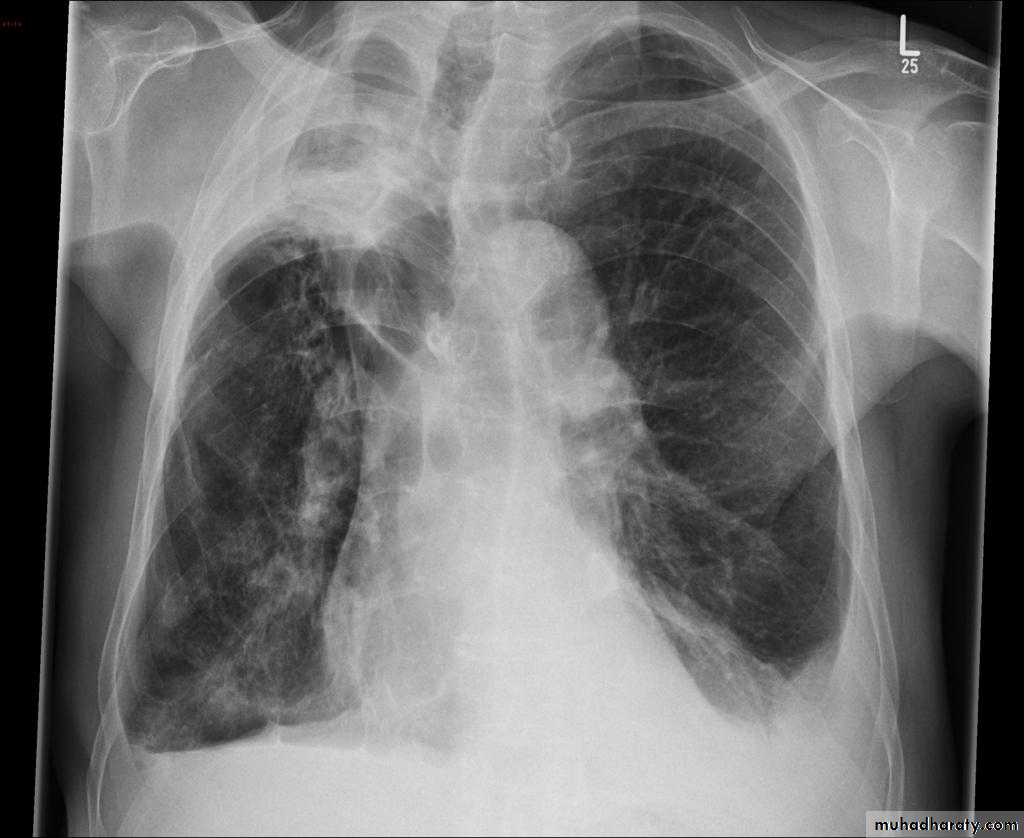 1.The more central lesions may merely appear as a bulky hilum, representing the tumor and local nodal involvement the lesion is irregular in outline have spiky or sun ray spiculation .