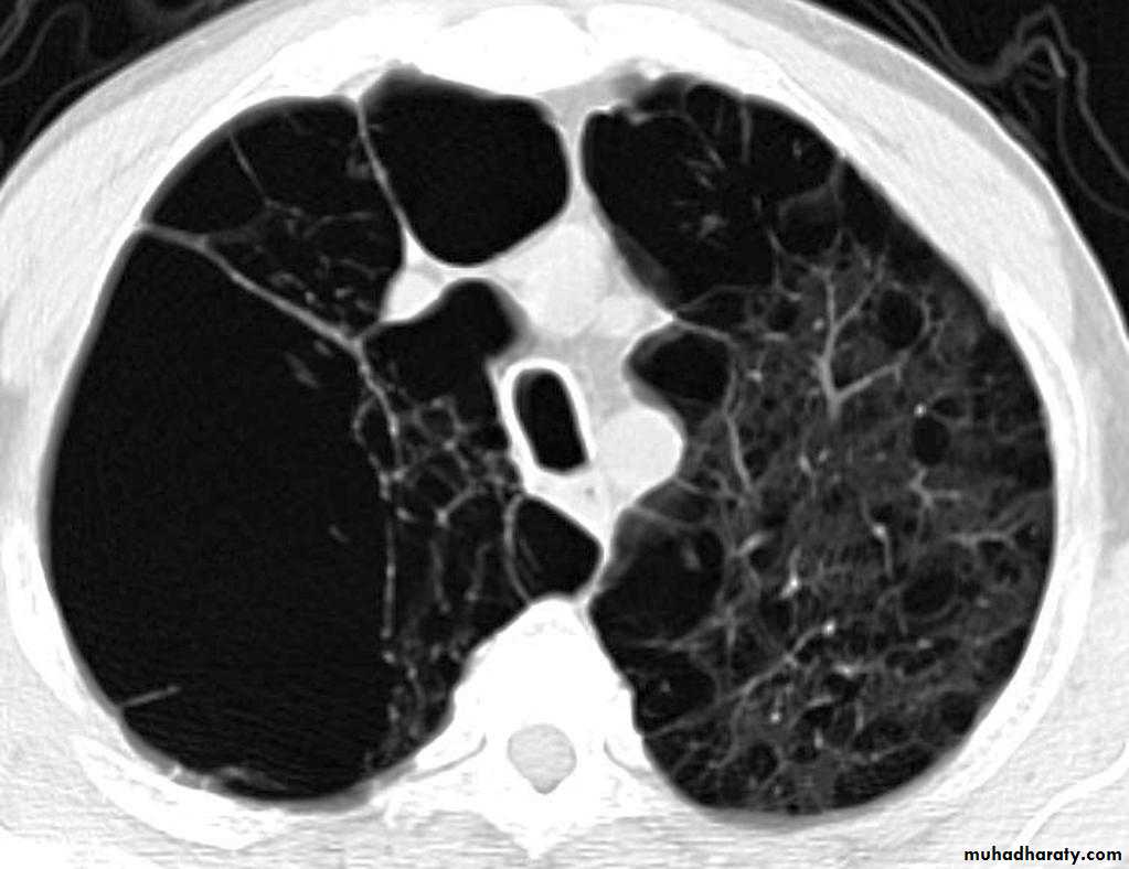2.ncreased and usually irregular radiolucency of the lungs