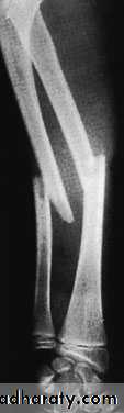 The fracture may be anywhere in the radius or ulna. The fracture line is transverse and displacement is slight. In children, the intact bone sometimes bends without actually breaking (‘plastic deformation’).