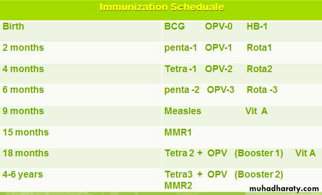 The work with the following schedule started in Iraq in the 2nd of January 2012Penta vaccine: Diphtheria, Pertussis, Tetanus, Viral hepatitis type (b) and Haemophilus influenzae type b.