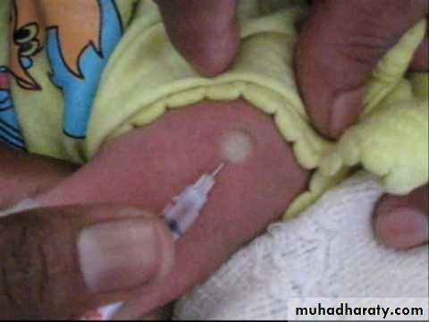 The original vaccine organism was a strain of M. bovis attenuated by subculture every 3 wk for 13 yr.The preferred route of administration is intradermal injection(i.d) (0.05 ml for babies less than 1 mo; 0.1 ml for those more than 1mo in the left upper deltoid)