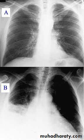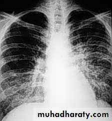 chest radiography reveals hyperinflated lungs with patchy atelectasis.