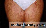 Stretch marks(purple striae) at lower abdomen and thigh.