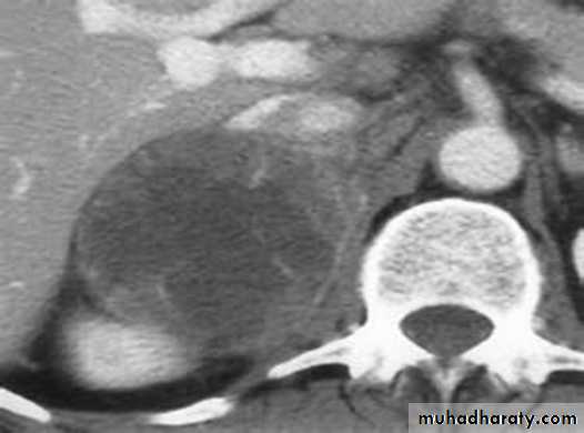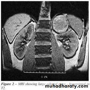 Approximately 60% of patients present with evidence of steroid hormone excess (Cushing’s syndrome). Patients with nonfunctioning tumours complain of abdominal or back pain caused by large tumours.Diagnosis