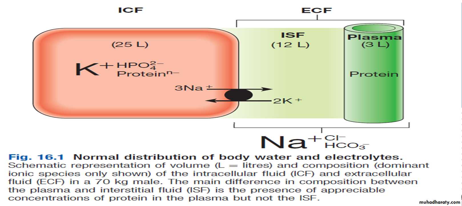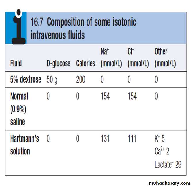 Intravenous infusion of an isotonic (normal) saline solution, on the other hand, results in more effective expansion of the extracellular fluid, although a minority of the infused volume (some 3/15) will contribute to plasma volume.
