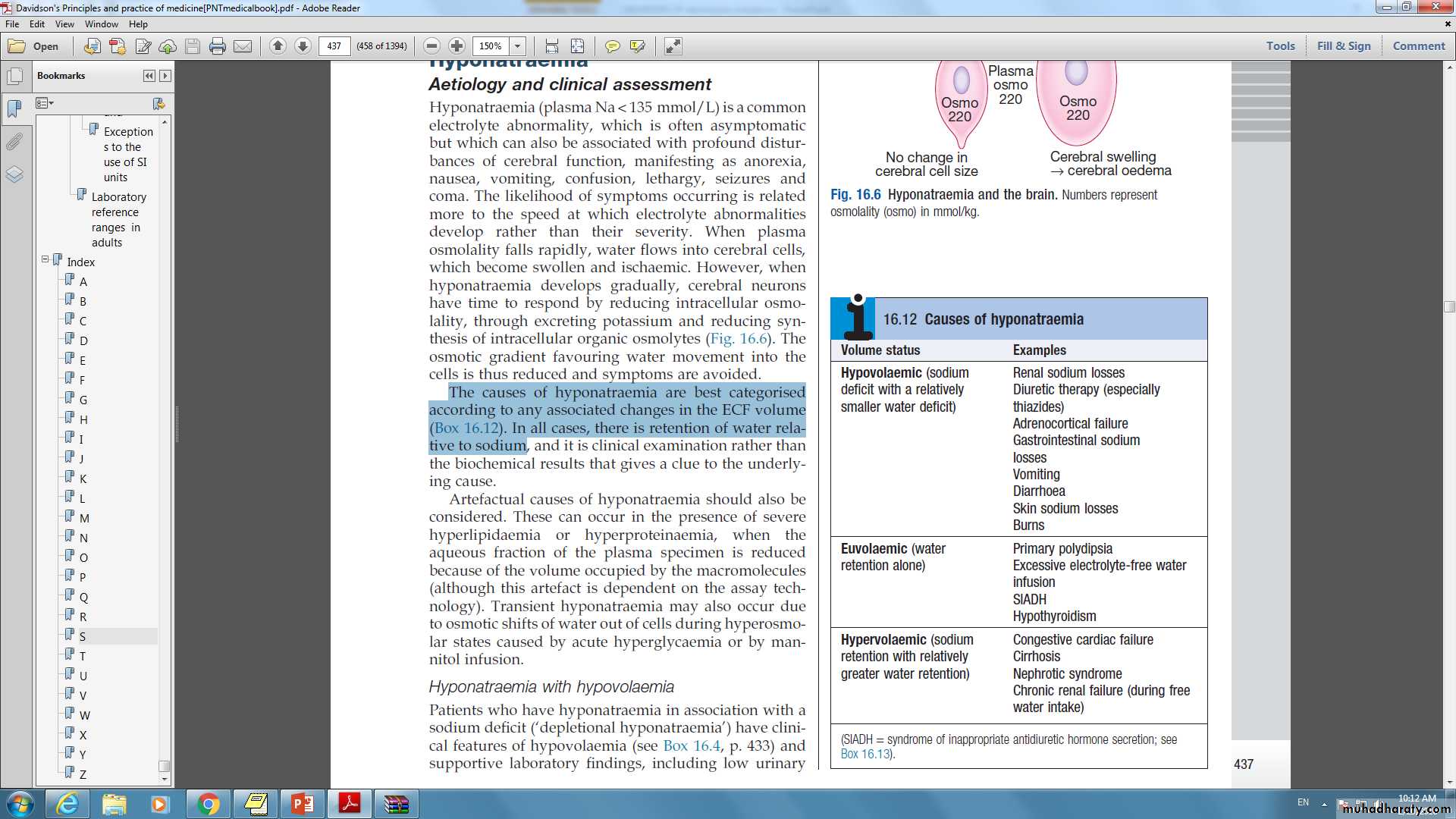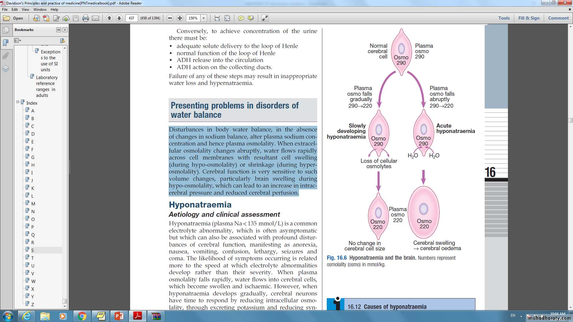 On the other hand, rapid correction of hyponatremia that has developed slowly (over weeks to months) can be hazardous, since brain cells adapt to slowly developing hypoosmolality by reducing the intracellular osmolality, thus maintaining normal cell volume Under these conditions.An abrupt increase in extracellular osmolality can lead to water shifting out of neurons, abruptly reducing their volume and causing them to detach from their myelin sheaths.