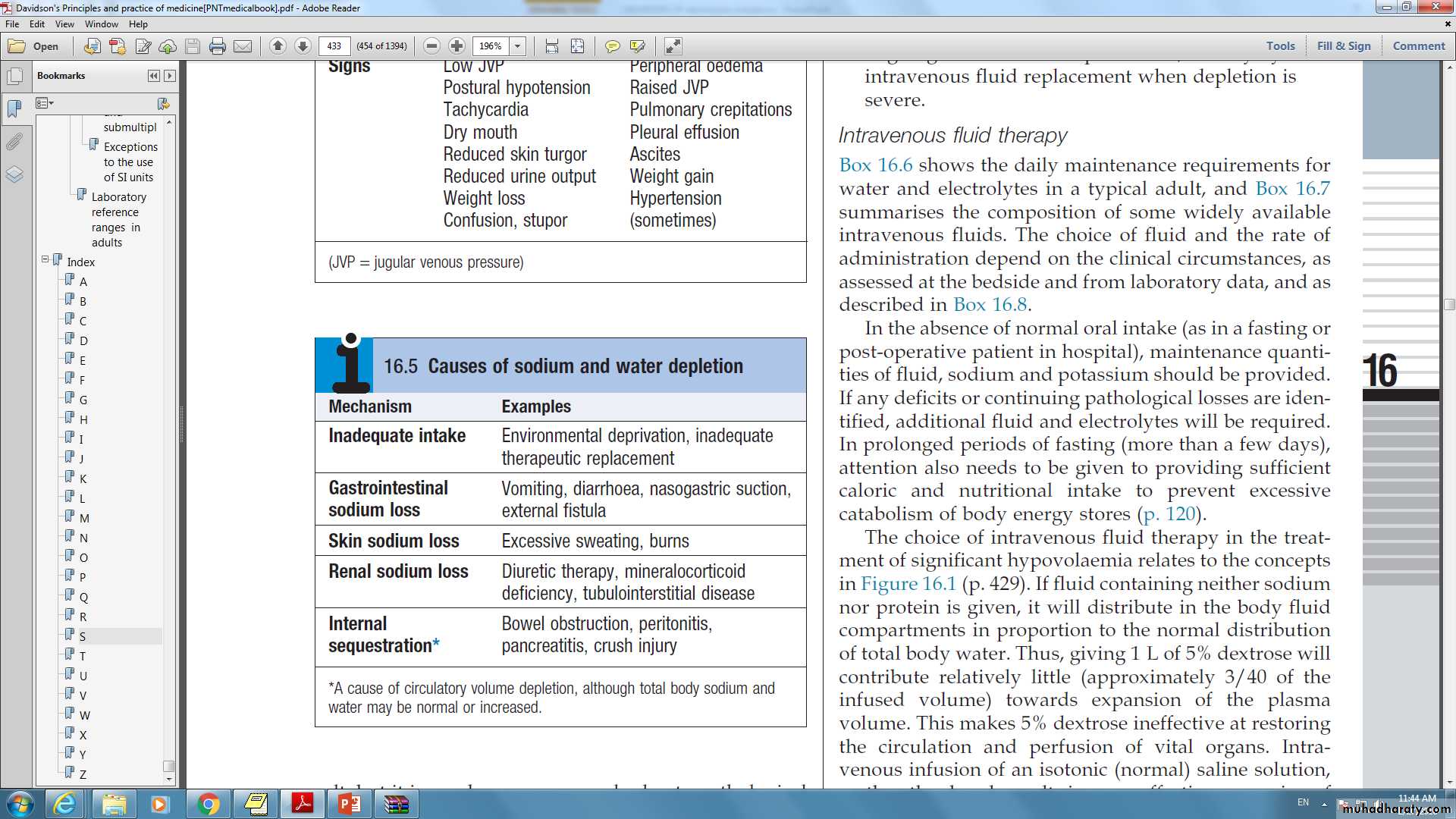 • replace the salt and water deficits, and provide ongoing maintenance requirements, usually by intravenous fluid replacement when depletion is severe.