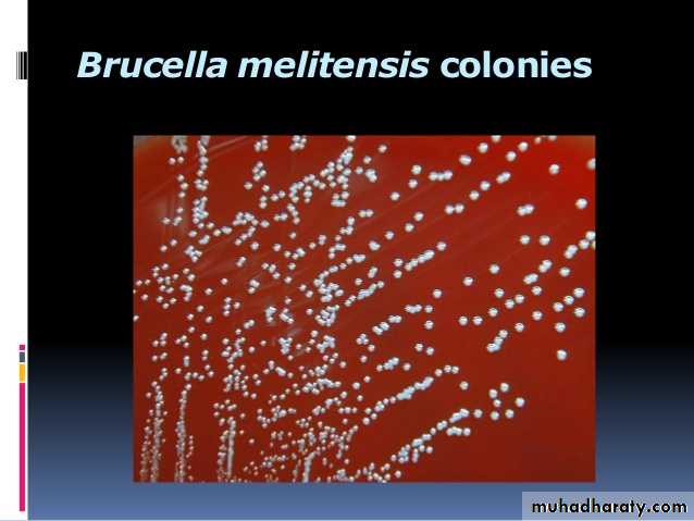 Colonies are small, convex, smooth, translucent, nonhaemolytic, slightly yellowish in young cultures but brownish in old ones, and appear in 2- 5 days (may be delayed up to 3 weeks).Clinical picture and pathogenesis of Brucellosis