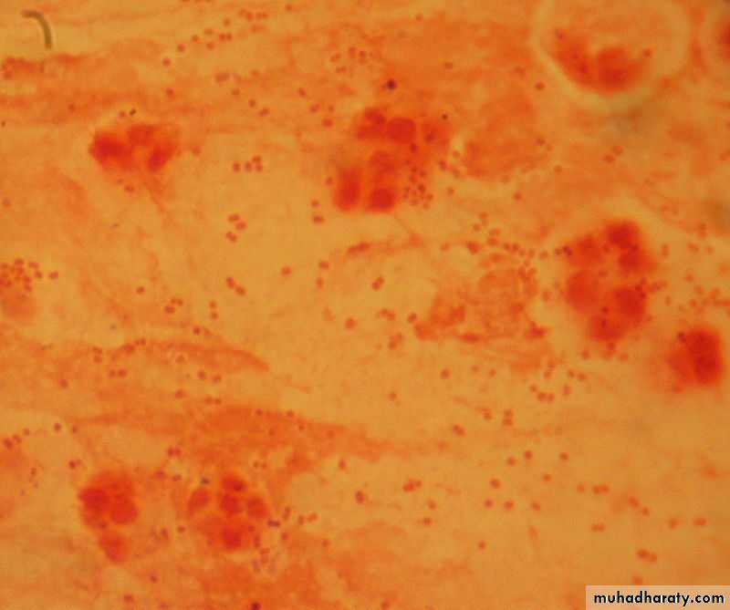1. Specimens: A saline nasal wash is the preferred specimen. Nasopharyngeal swabs or cough droplets expelled onto a “ cough plate” held in front of the patient’s mouth during a paroxysm are some times used.2. Direct fluorescent antibody (FA) test to examine nasopharyngeal swab specimens with sensitivity of 50%. Also, it is most useful in identifying B. pertussis after culture on solid media