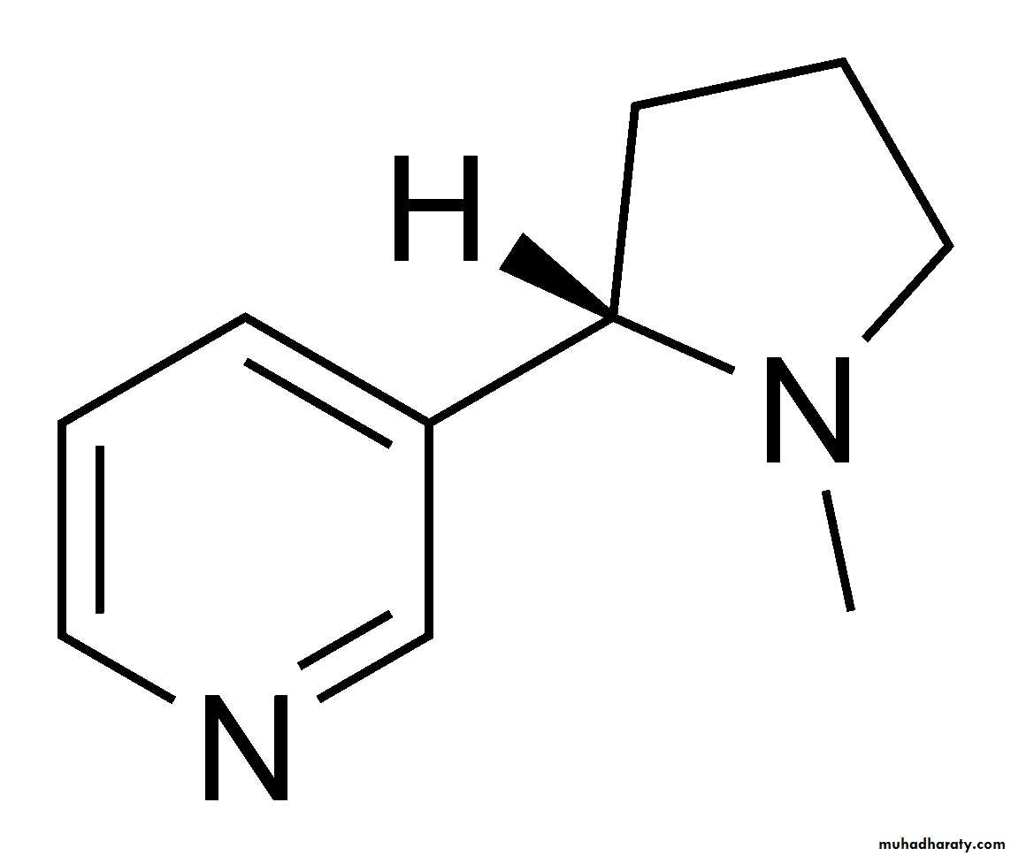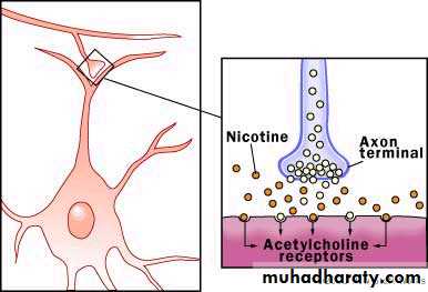 • Nicotine is a direct agonist for nicotinic ACh receptors (nAchRs)• Low dose: Stimulate receptors
